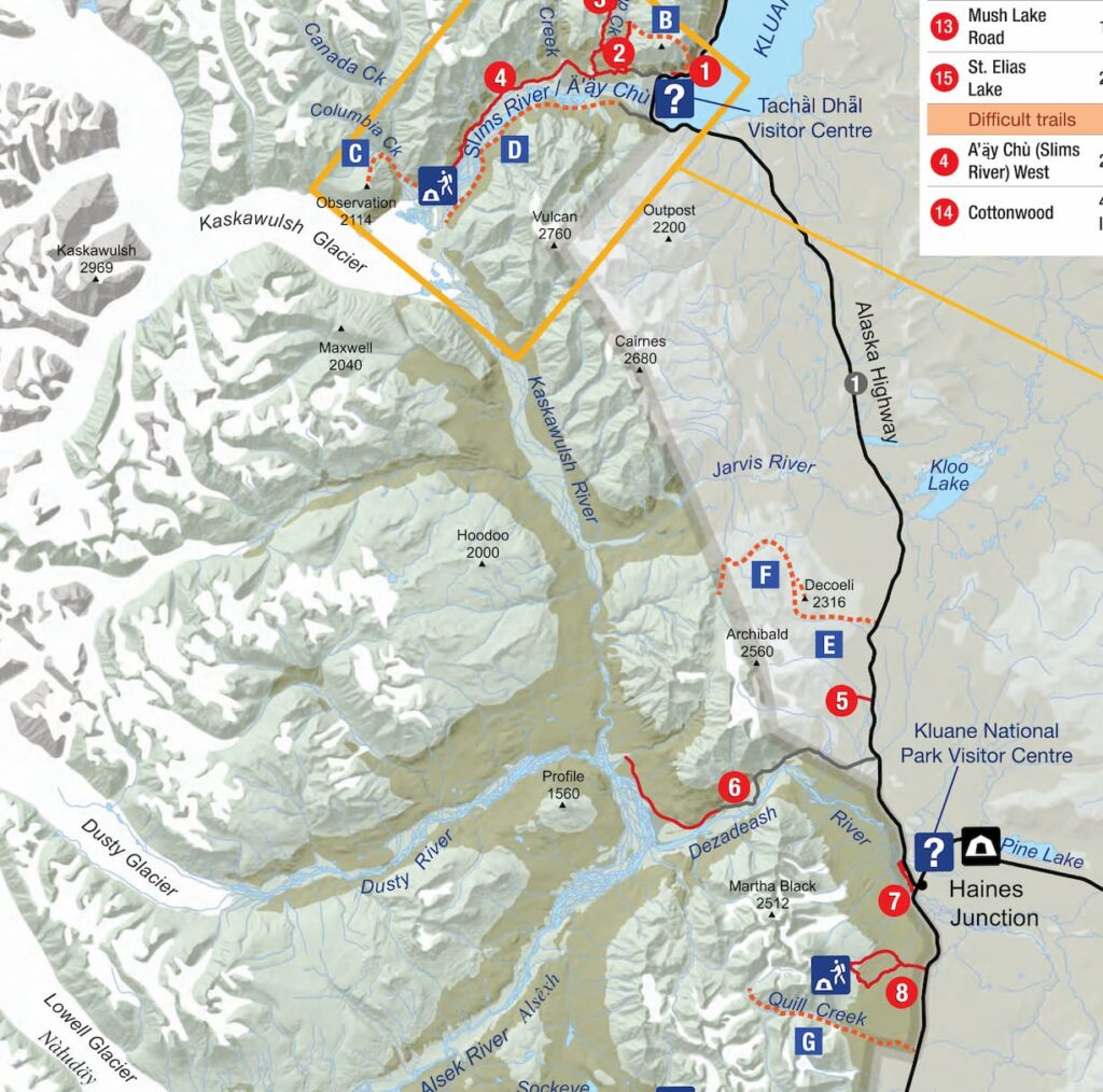 Scientists are monitoring succession of vegetation but anticipate it will be years before the newly exposed shoreline is stabilized and the giant plumes of glacial dust, known as loess, obscure the sky. As the waters of Kluane Lake drop, scientists also expect that the lake could cease to have any outflow into the Yukon River. Alternatively if the Kaskawulsh River were to erode enough of the Slims Glacier’s moraine, water could begin to flow from Kluane Lake and into the Kaskawulsh and on to the Pacific Ocean!