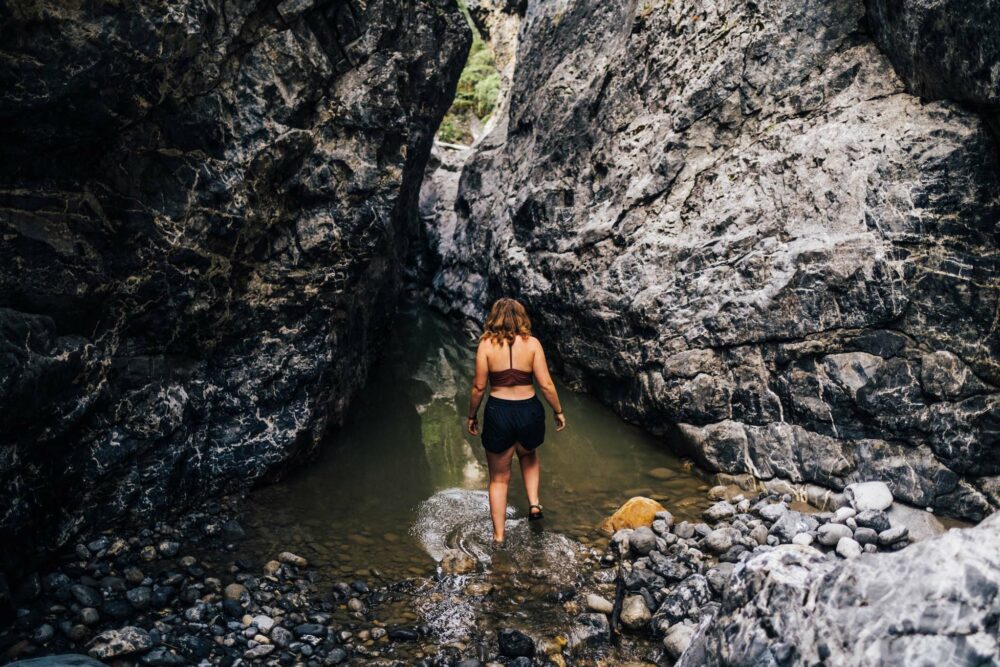 DAY 10 – KRAUS’ HOTSPRINGS (TUŁETSĘĘ) After the waves of Lafferty’s Riffle, we take a quick dip in Kraus’ Hotsprings (Tułetsęę) before bidding farewell to the canyons and entering the braided channels of The Splits. Here a broad valley is revealed and the surrounding mountains, ridge piled upon ridge, form a dramatic contrast to the enclosure of the canyons. Lush boreal forest bordered by steep ridges form a “storybook” setting.