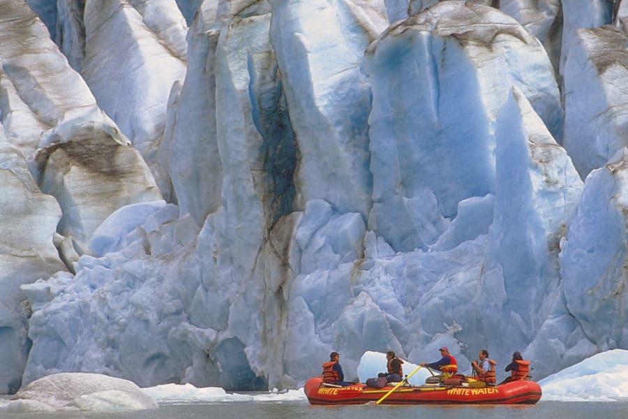 • Rafters float through a stunning, iceberg-filled lake